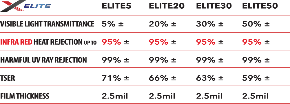 XELITE series offers top of the line heat blocking Sputtered technology surpassing the competition in performance and heat rejection. The remarkable solar control and color stability of the XPS Sputtered Technology places it a cut above other Sputtered firms.